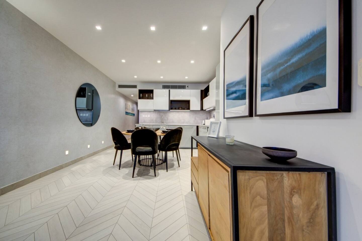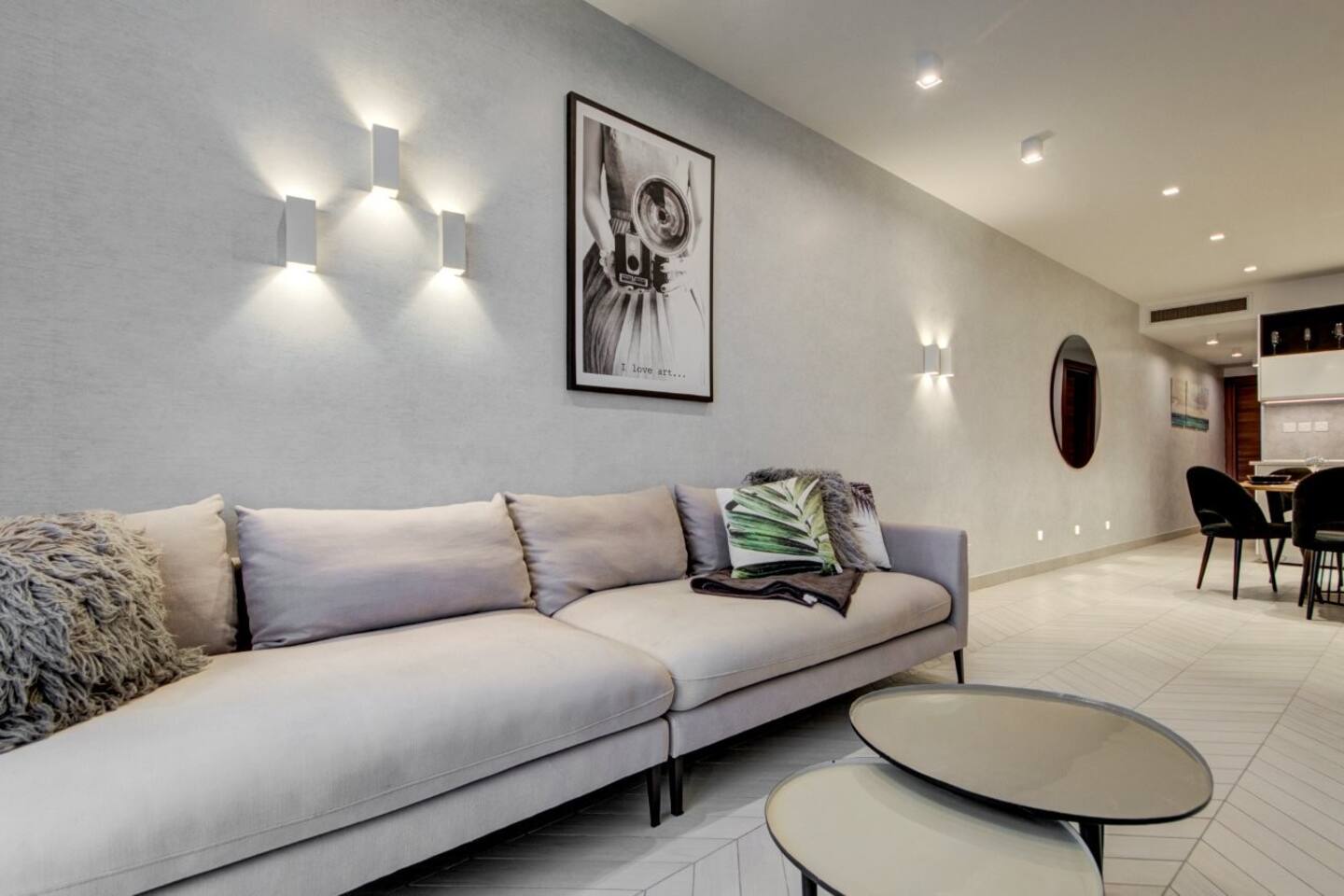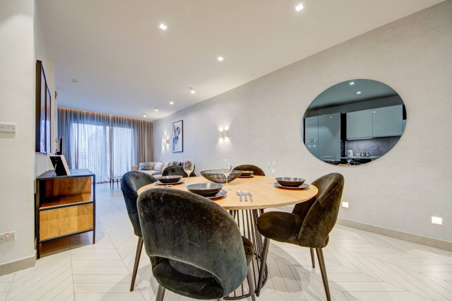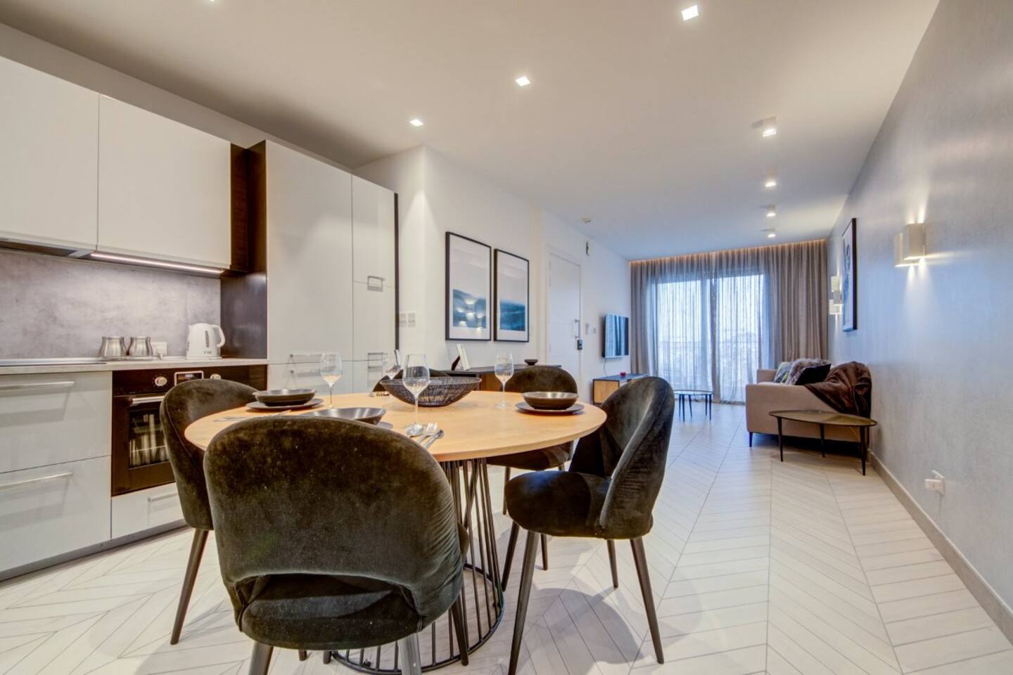 πŸ›‹οΈ Open-Plan Living & Dining – comfortable seating, dining table, direct access to front balcony
