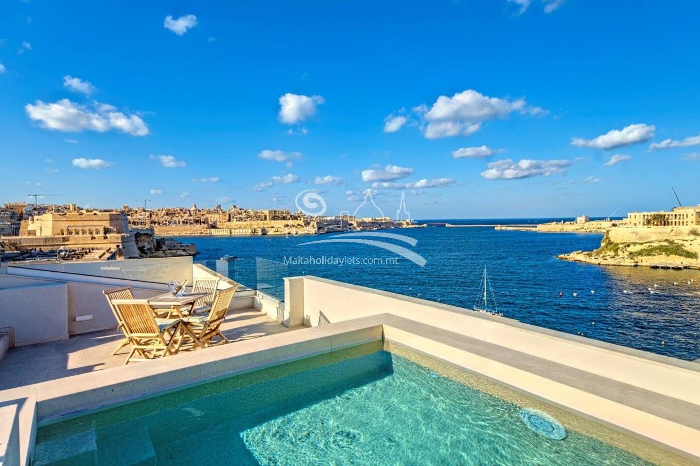 Enjoy breathtaking panoramic views of Valletta, the Grand Harbor, and the historic forts and bastions from this luxurious penthouse spread across three levels.