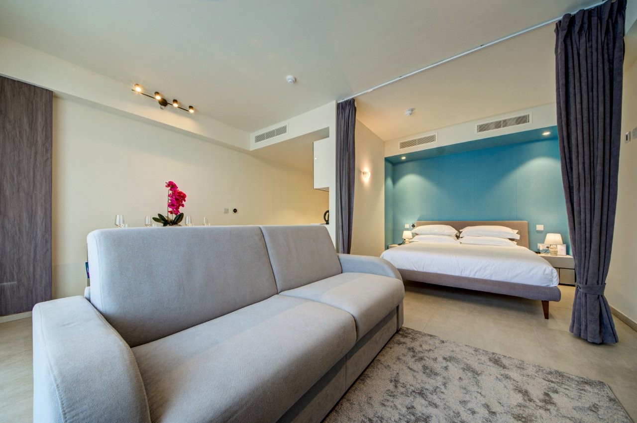 Stay in the heart of elegance, just moments away from the vibrant nightlife of St. Julian’s. Enjoy complimentary access for two guests to the stunning residents’ pool, the perfect place to relax and soak up the Maltese sun. Keep up with your fitness routine at the fully equipped on-site gym (surcharge applies). The property is ideally situated within walking distance of Malta’s best dining, shopping, and nightlife venues.