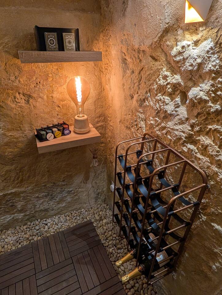 Just a short stroll from Birgu and the Valletta ferry. Enjoy a unique experience with a private wine cellar and dining area on the basement level, ideal for romantic evenings. Watch breathtaking sunsets from the shared terrace, offering stunning views of the Three Cities, Valletta, and the Grand Harbor. The home also features an espresso machine, SMART TV, air conditioning, and a beautifully designed bathroom for a comfortable and memorable stay.