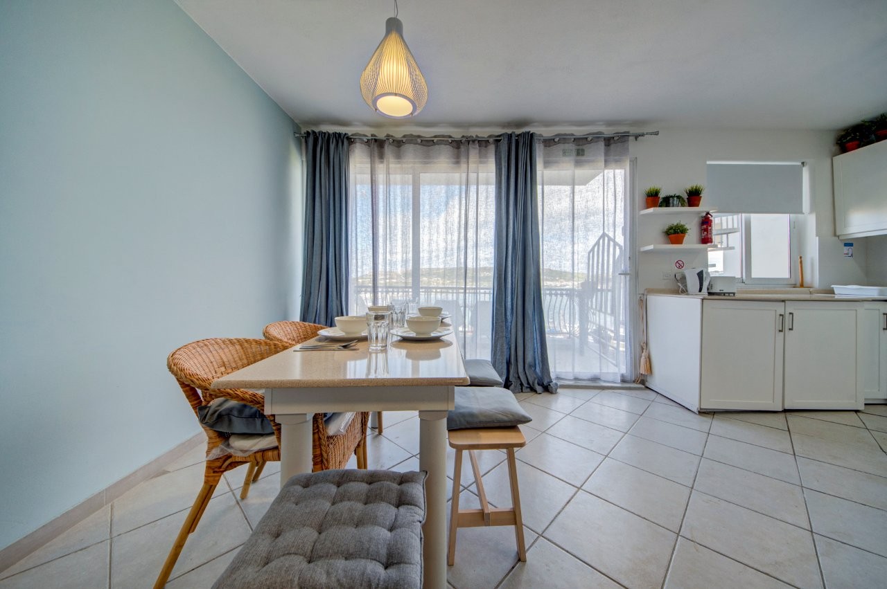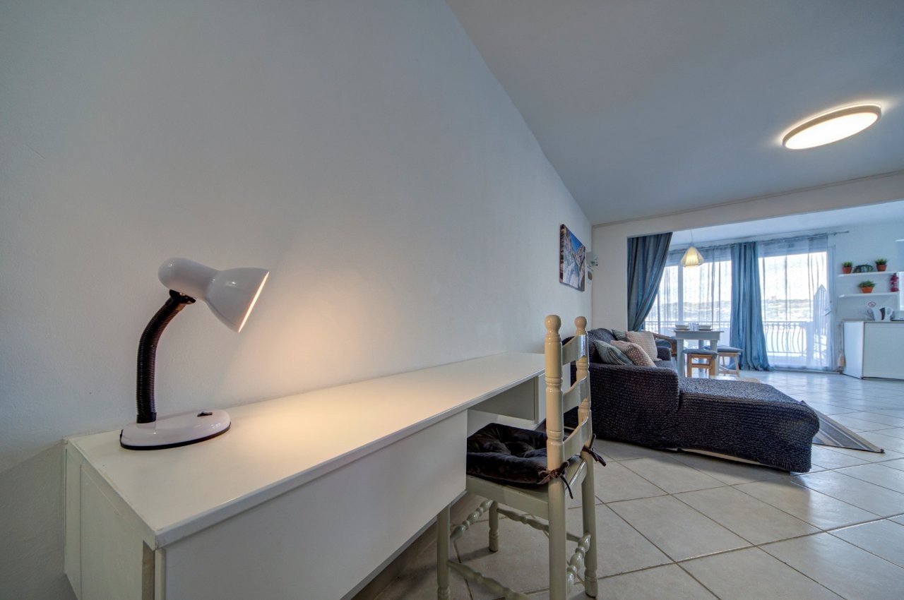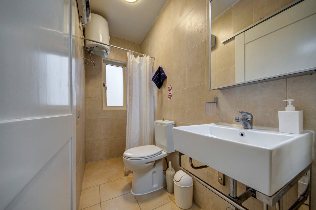 Seafront apartment on the 3rd floor in Mellieħa, directly facing Għadira Bay — Malta’s largest sandy beach. Three bedrooms, two bathrooms, and open sea views from the building, with a rocky swim spot one minute’s walk away and everything else — restaurants, water sports, coffee shops — on the doorstep. A practical, well-located base for up to 5 guests.